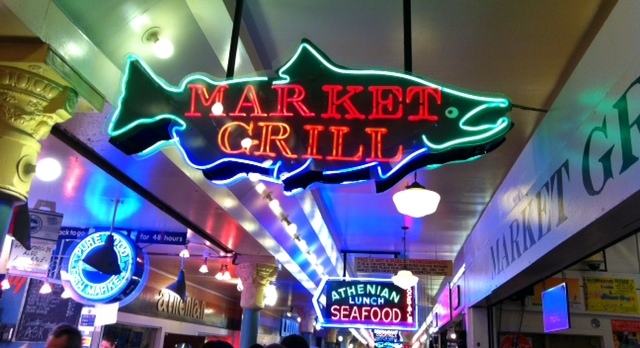 After acting like total tourists walking around with our mouths open and watching the fish market employees throw fish and banter back and forth, we found lunch.