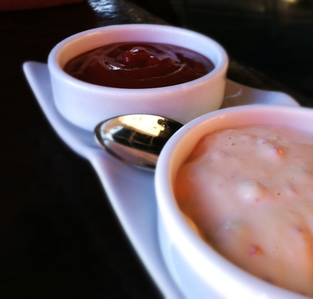 Then we both had a sandwich. Halibut for her and Salmon for him. These sandwiches were just perfect and really let the fish shine through. On each sandwich the fish is blackened but not overpowering. The seasoning they use is salt free so that wasn’t an issue either. They have caramelized onions, lettuce and tomato. The halibut sandwich has tarter sauce and the salmon has a rosemary mayo. Both were awesome.