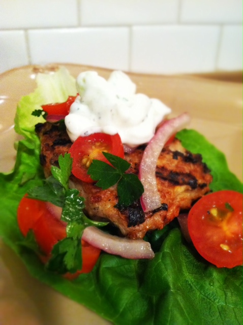 Chicken Burger Lettuce Cups with Homemade Salsa and Tzatziki